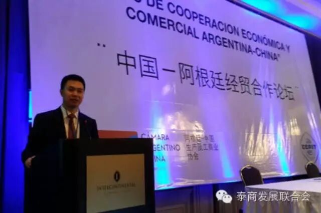 当地时间7月19日上午,为配合习近平主席对阿根廷进行的国事访问,中国贸促会与阿根廷外交部、阿中商会在布宜诺斯艾利斯共同组织举办了中国-阿根廷经贸合作论坛,中国贸促会会长姜增伟、阿根廷外交部国际经济关系国务秘书比安科和阿中商会主席斯帕多内出席论坛开幕式并致辞。其中,五洲国际集团董事长舒策城作为中方企业家优秀代表获邀出席本次论坛,并发表演讲。