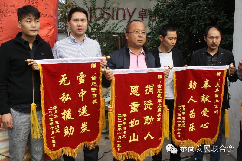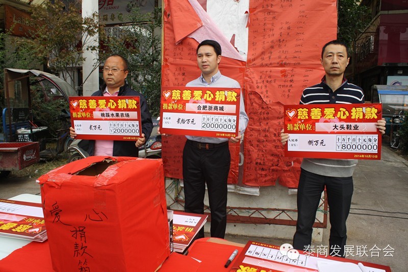 董事长刘成生在得知这一情况后,号召主力商家于10月13日上午在安徽大市场内展开了一场爱心捐助活动,同时委托公司总经理吴启军以合肥·浙商城的名义向王庆凤家庭捐款20万元人民币。募捐活动期间众多媒体和爱心人士纷纷参与,共筹集善款50多万元。