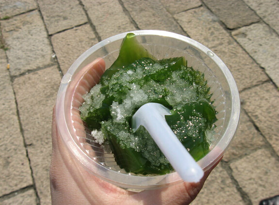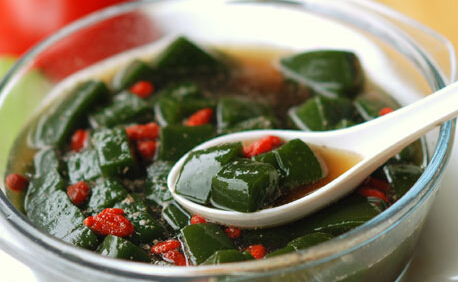 俗称豆腐柴,是浙南山区一种木本小灌木的叶子做成的。将豆腐柴叶子摘来洗净,取其汁,可以加适量水稀释,而后放入少许清凉的牙膏,搅匀,加盖,放置。待冷冻后,可加糖或榨菜等配料,即可食用,是夏日里一道清爽的冷饮。