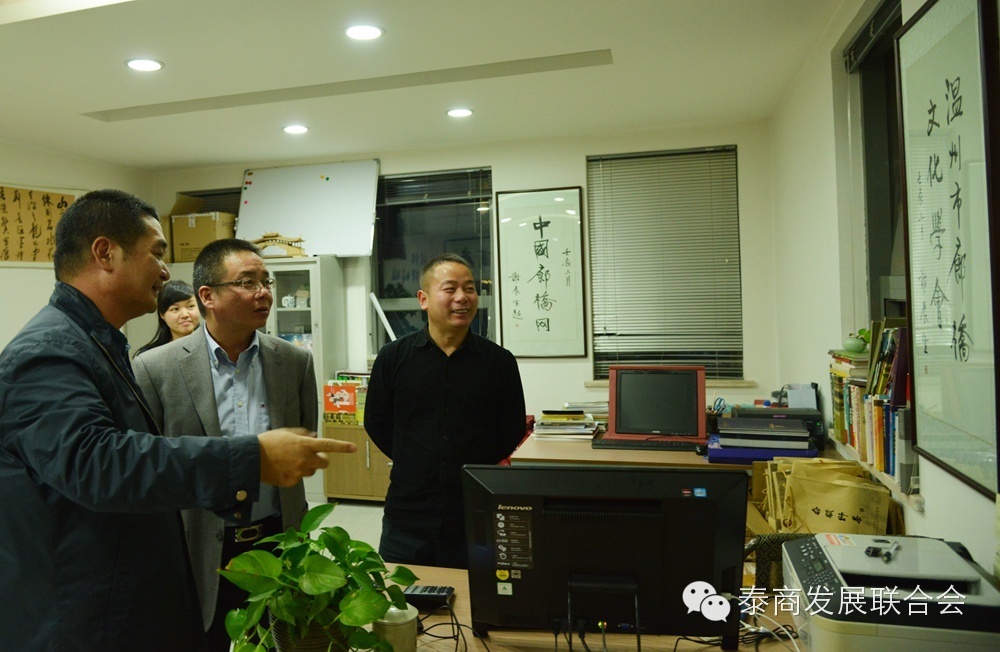 11月20日,泰顺县人民政府童德平副县长莅临位于温州市黎明西路万洋集团大楼的温州市廊桥文化学会、温州市泰商发展联合会办公室,调研指导工作,看望工作人员。