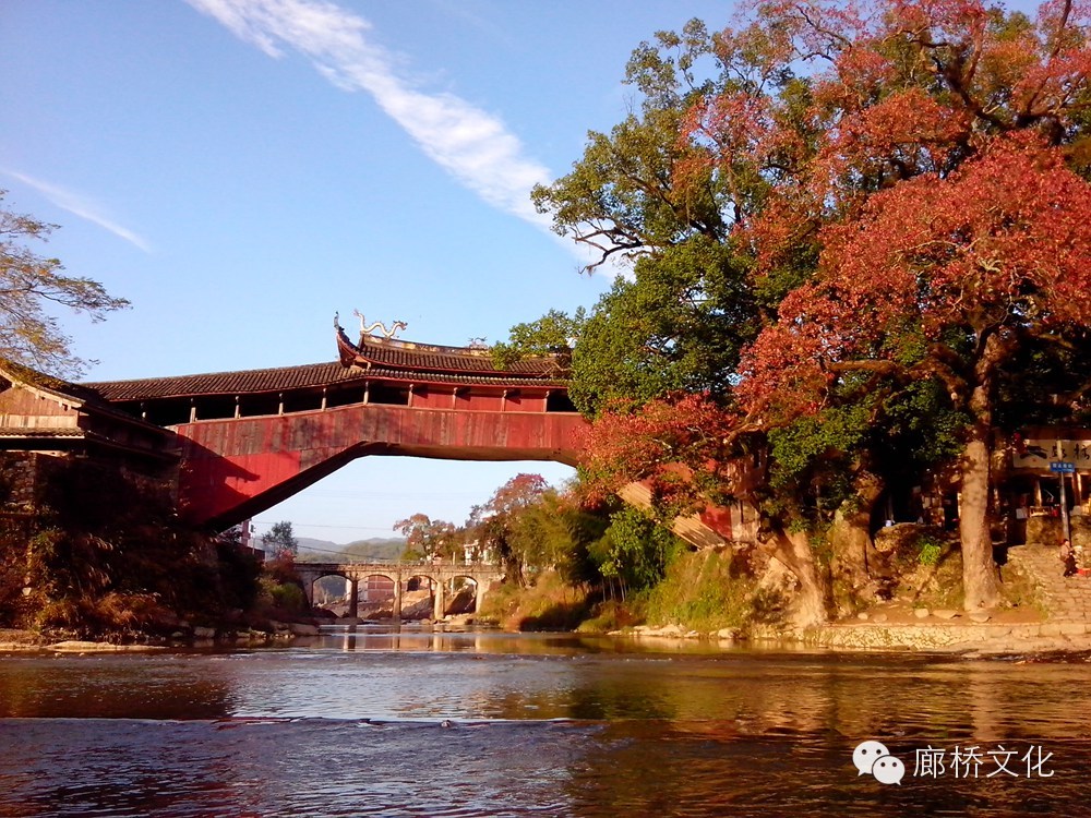 横着一条胸襟宽阔的河,弓着腰身的廊桥就在对岸:在又一条山涧冲出来的入江口,纵身跃出一道彩虹。