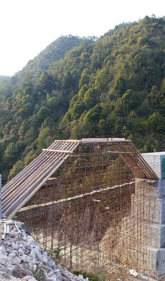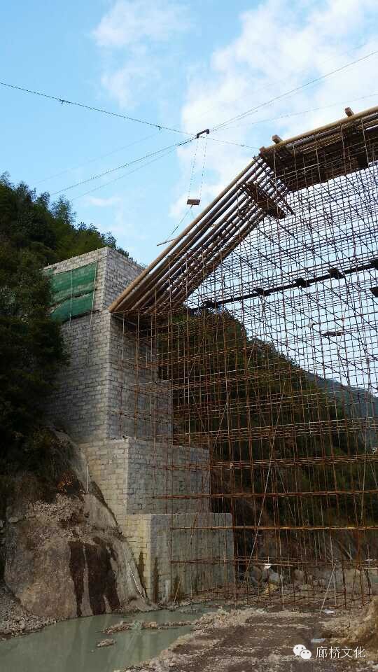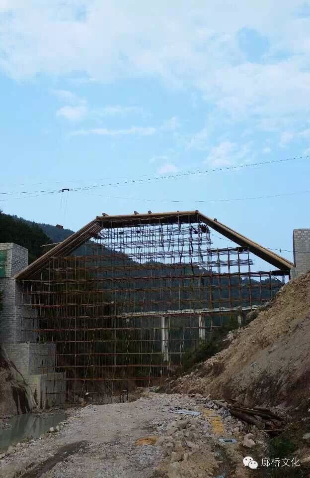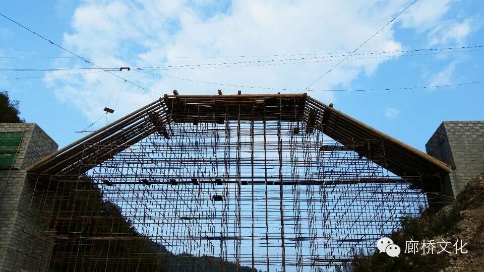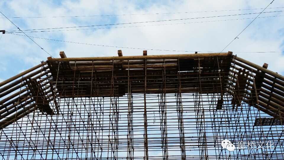 离水面最高单跨最长的木拱廊桥完成三节苗架构