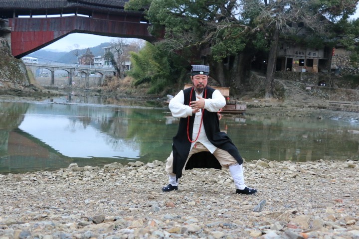 就连清风道骨的武当派掌门人游玄德也忍不住拿出手机“到此一游”。更是即兴在石滩上舒展一番,连连表示,如此桃源仙境实在是适合道人修身养性。